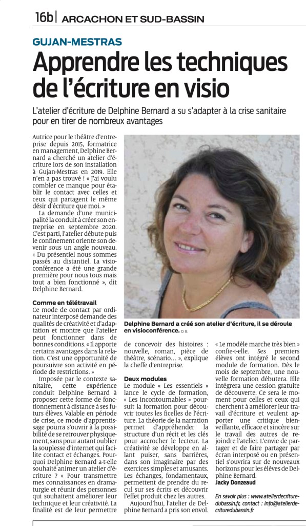 Retrouvez l’article au sujet de l’Atelier d’écriture du Bassin, paru dans le quotidien SUD OUEST, le 13 mai 2021 :